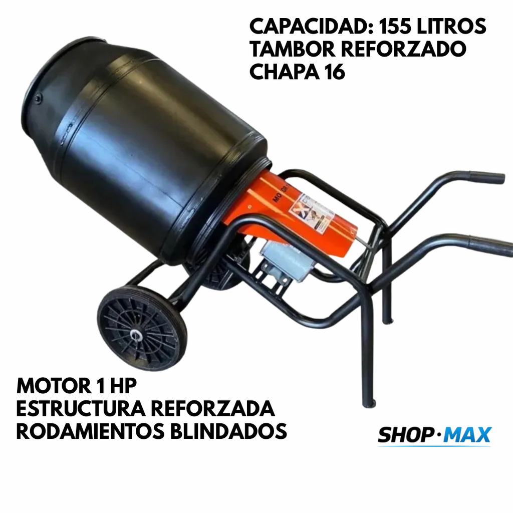 Hormigonera Profesional TurboMix 155 LITROS 1HP + Carretilla Reforzada 70L
