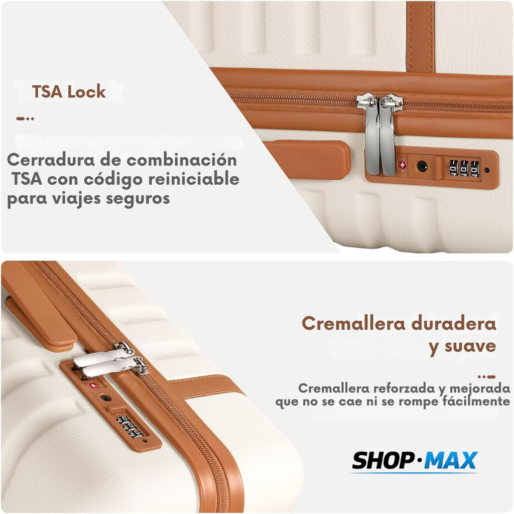 La cerradura TSA incorporada permite inspecciones de seguridad sin dañar la maleta, protegiendo tus pertenencias durante todo el viaje. Los cierres de aleación reforzada garantizan resistencia y uso prolongado.