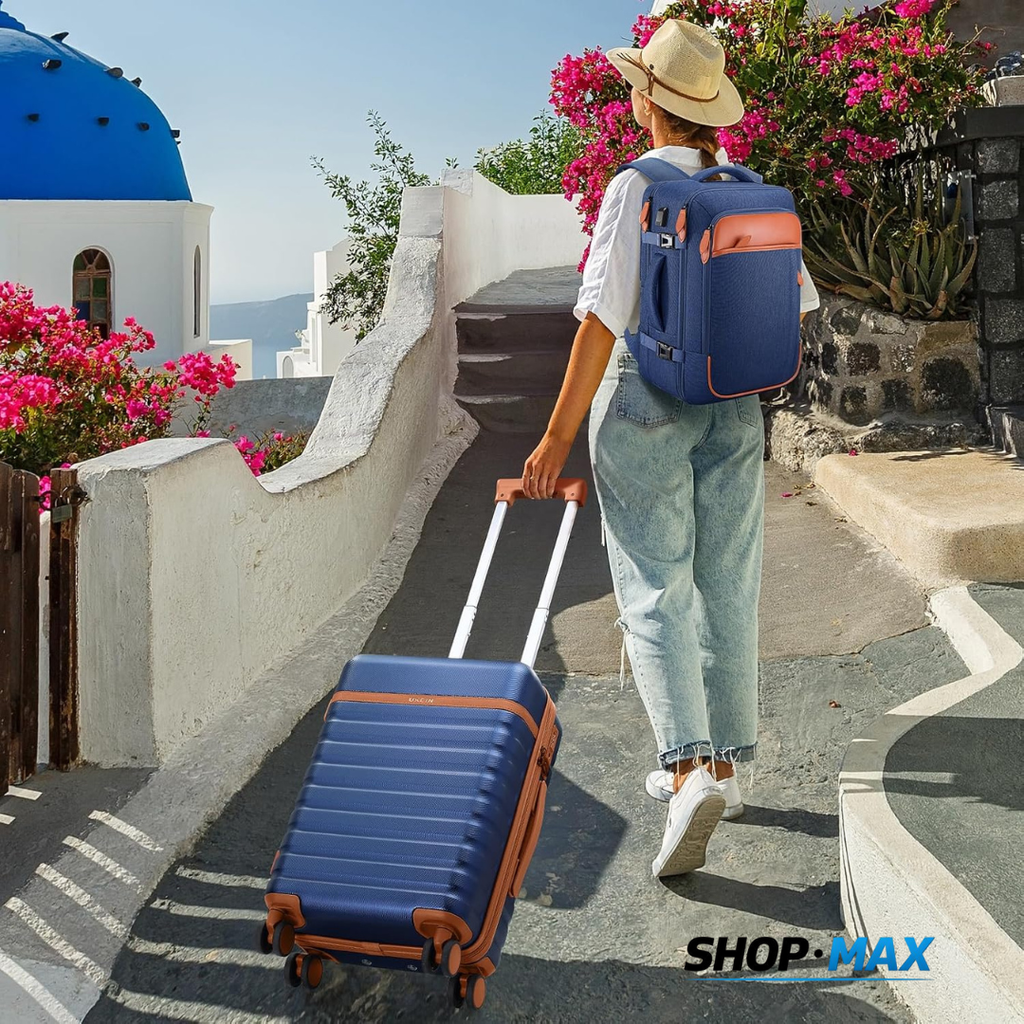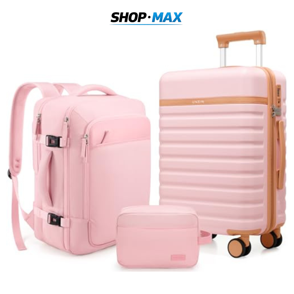 El conjunto incluye una maleta rígida de mano de 50,8 cm, una mochila de viaje de 45,7 cm y un neceser, ofreciendo una solución funcional y bien organizada para transportar tus pertenencias de forma eficiente.