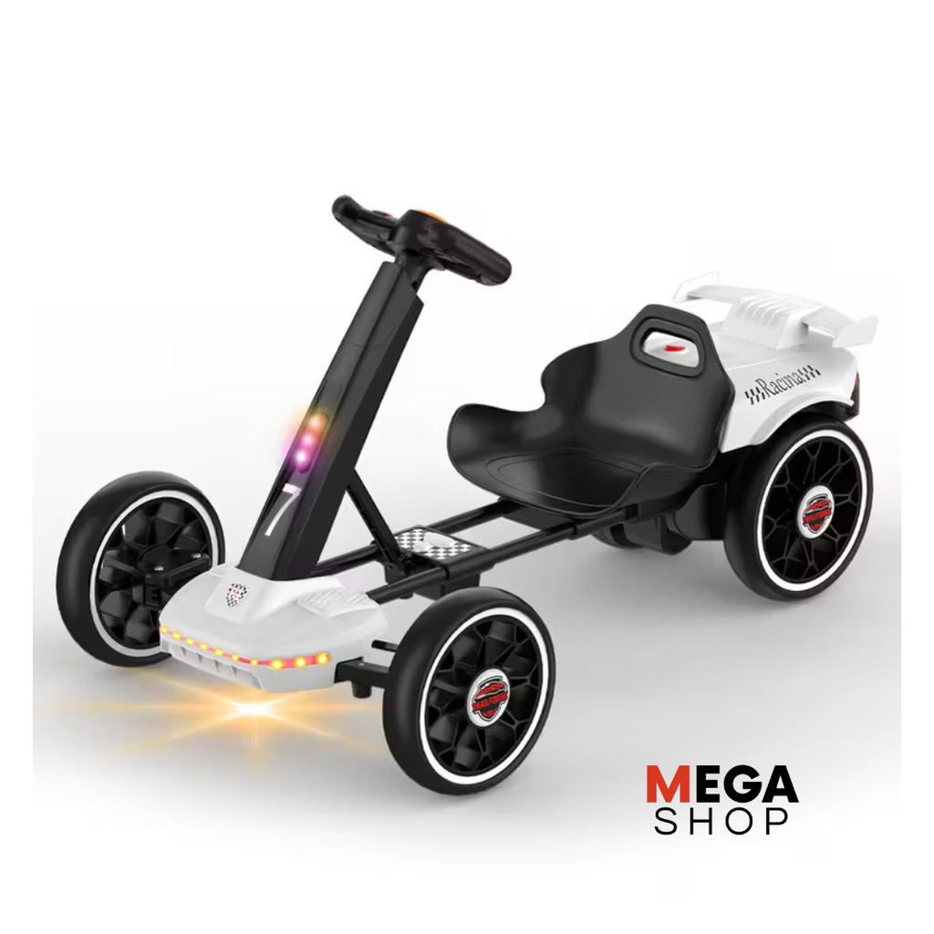 O kart conta com uma estrutura reforçada capaz de suportar até 60 kg , garantindo durabilidade mesmo com uso frequente.